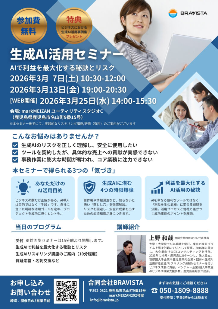 本セミナーでは、最新のAI技術をいかにして実業務に落とし込み、利益を最大化させるか、その秘訣とリスクを分かりやすく解説いたします。