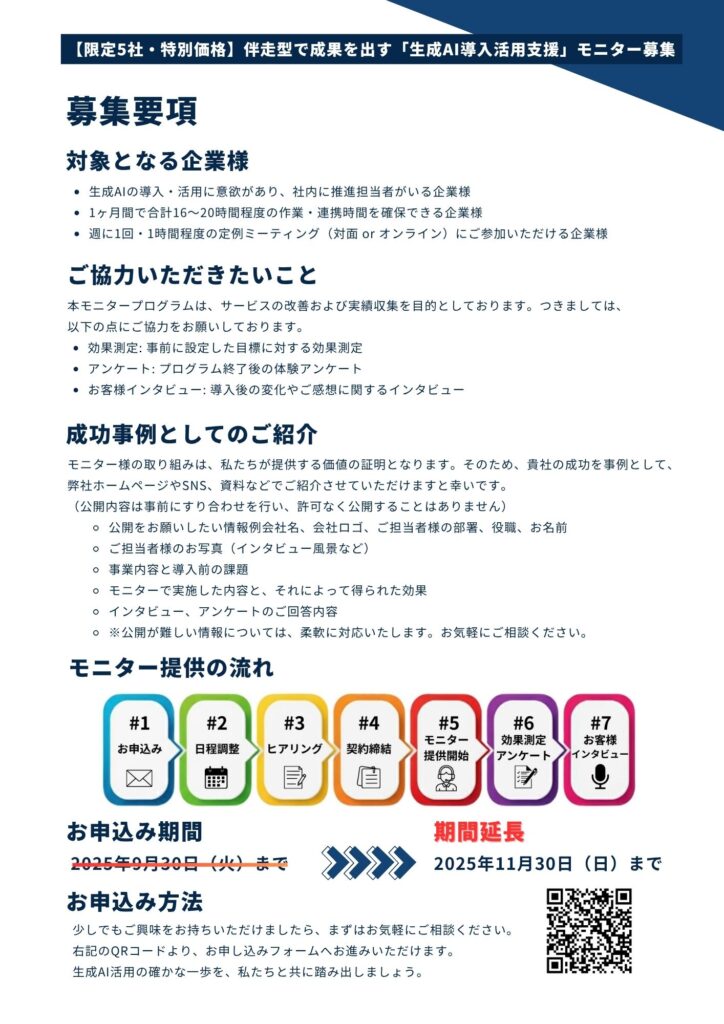 2025年11月30日まで申込期間を延長し、追加で5社様を限定募集することを決定いたしました。